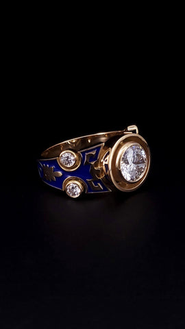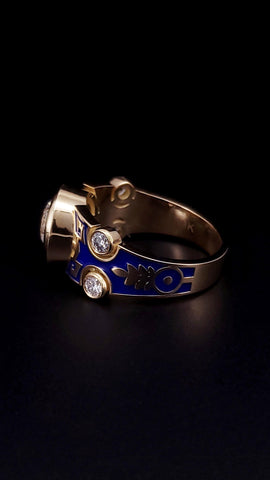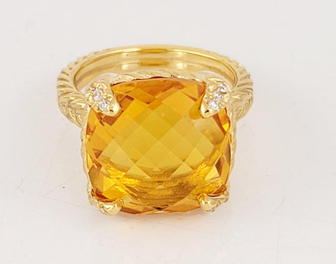 Chatelaine Ring 18K Yellow Gold with Citrine and Diamonds, 14mm