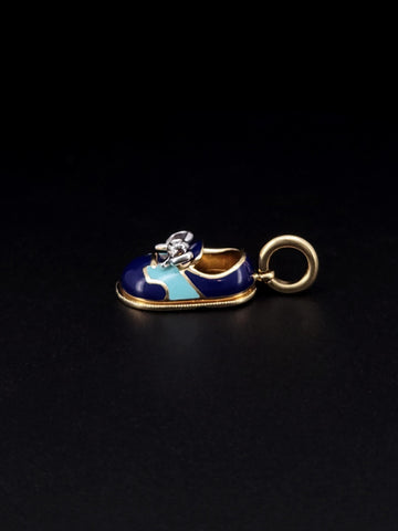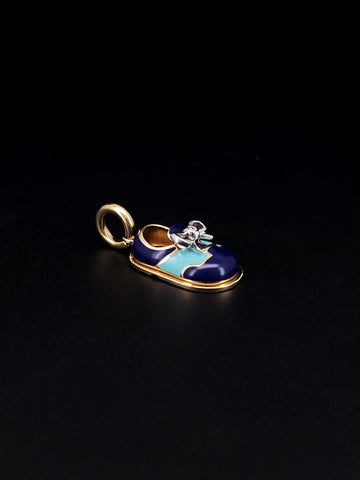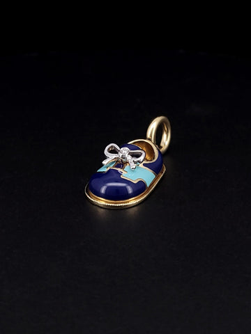 Aaron Basha 18K Yellow Gold Diamond Baby Shoe The Classic Saddle Pendant