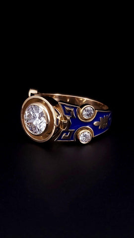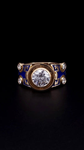 Charles Krypell 18k Gold Black Onyx and Diamonds Ring