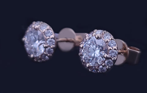 Custom Made Round Single Prong Diamond 1.08ctw Studs Earring in 14K Yellow Gold