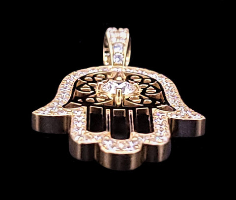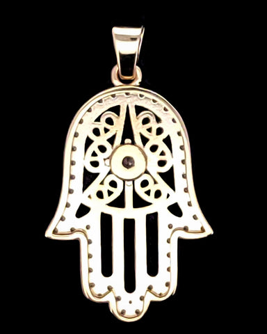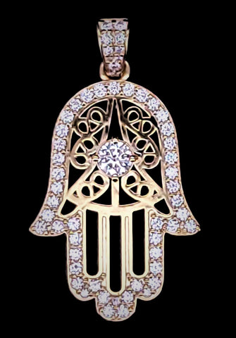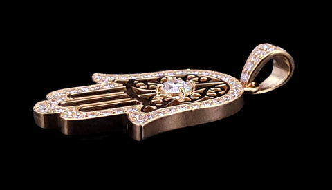 Custome Made Hamza Pendant in 14K Yellow Gold with Diamonds