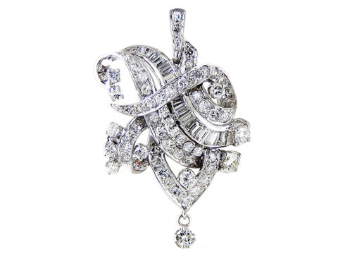 Platinum pendant meticulously set with round/baguette VS E-F color Diamonds.