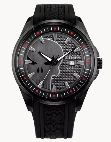 CITIZEN Eco-Drive Marvel Quartz Mens Watch, Stainless Steel with Polyurethane strap, Punisher, Black AW1609-08W