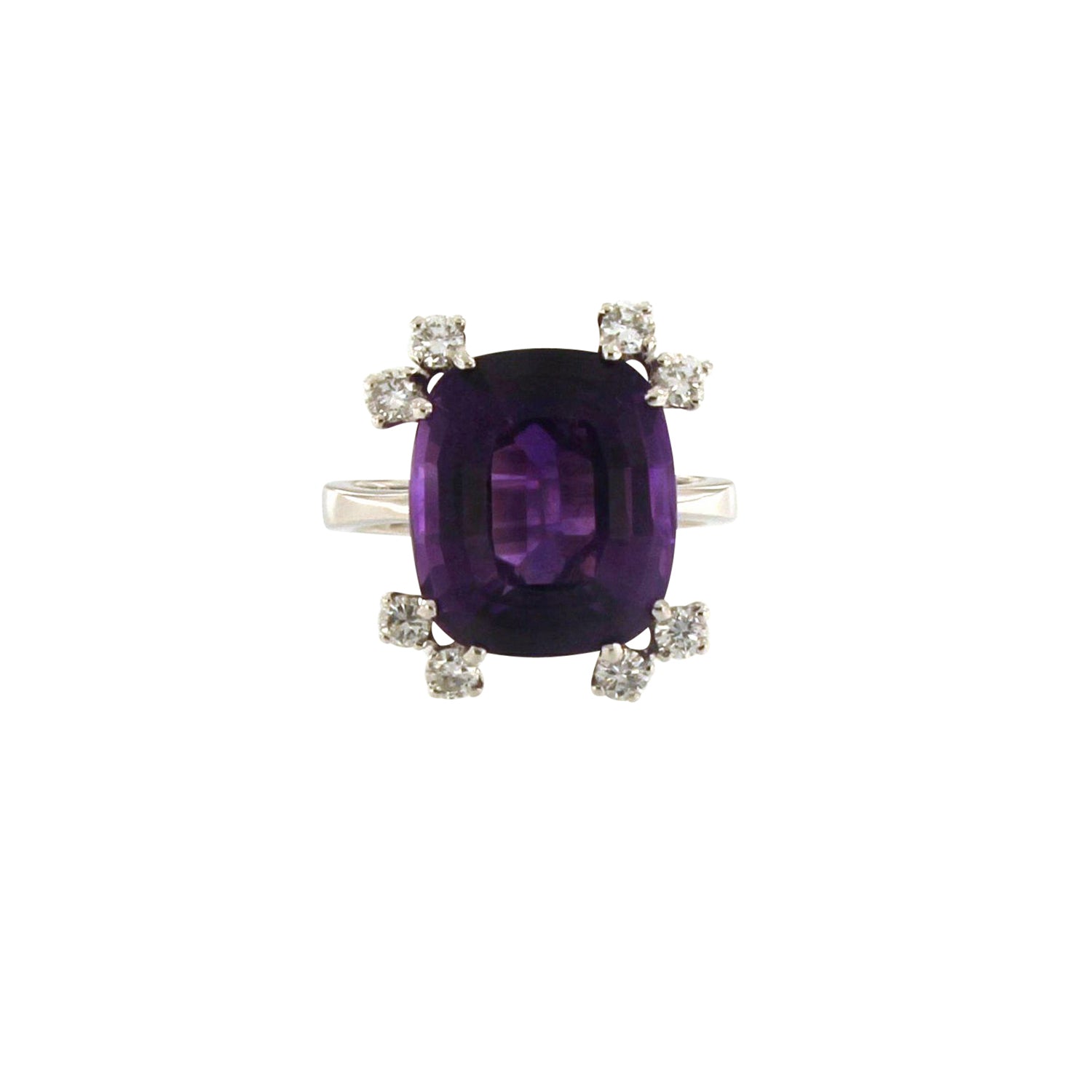 The center stone is Amethyst 8ctw. Diamond 0.5ct of F color and VS clarity.