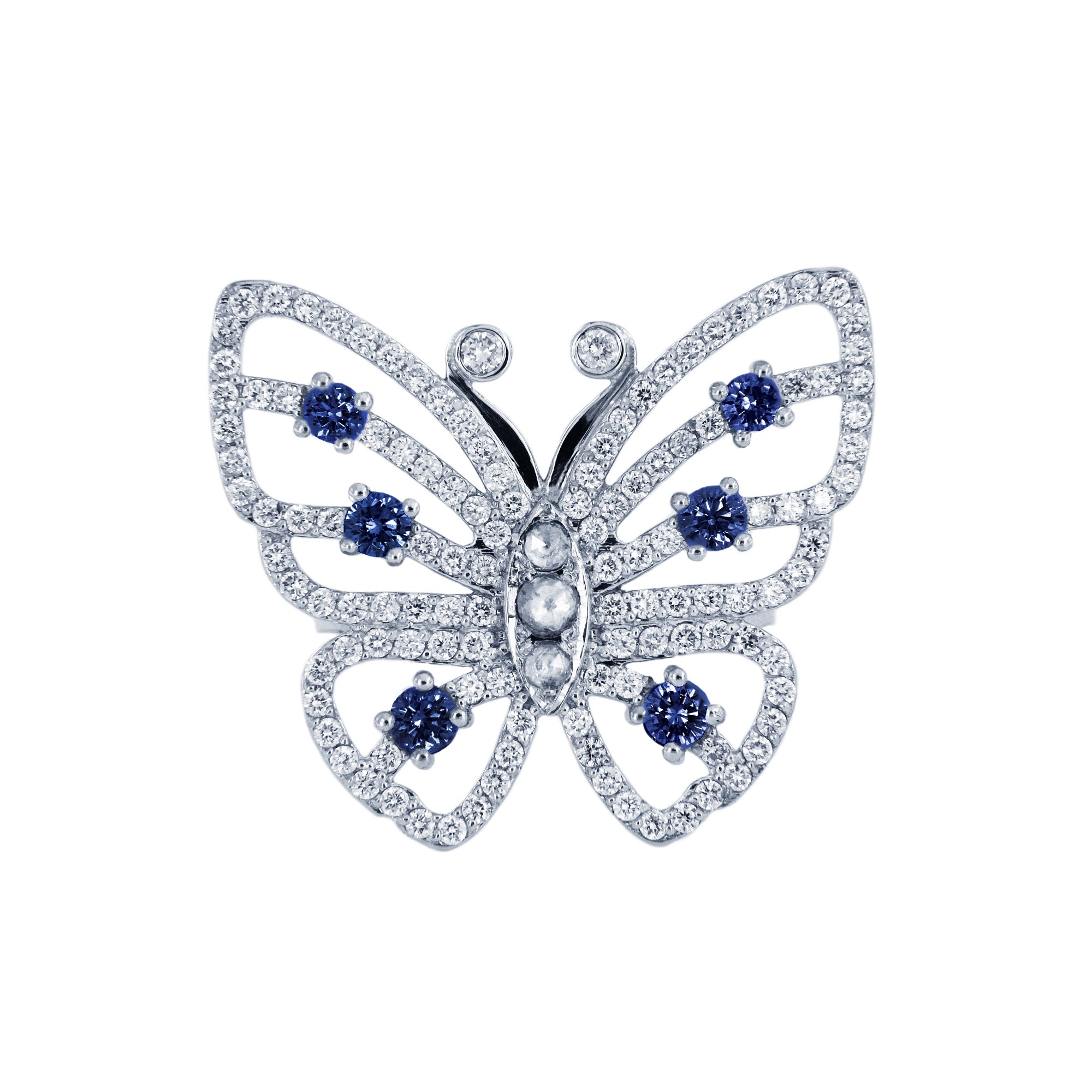 Butterfly Diamond Sapphire 14 Karat White Gold Ring