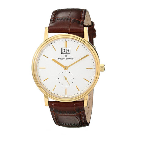 Claude Bernard 64010 37J AID Classic Gents Gold PVD Brown Leather Date Men's Watch