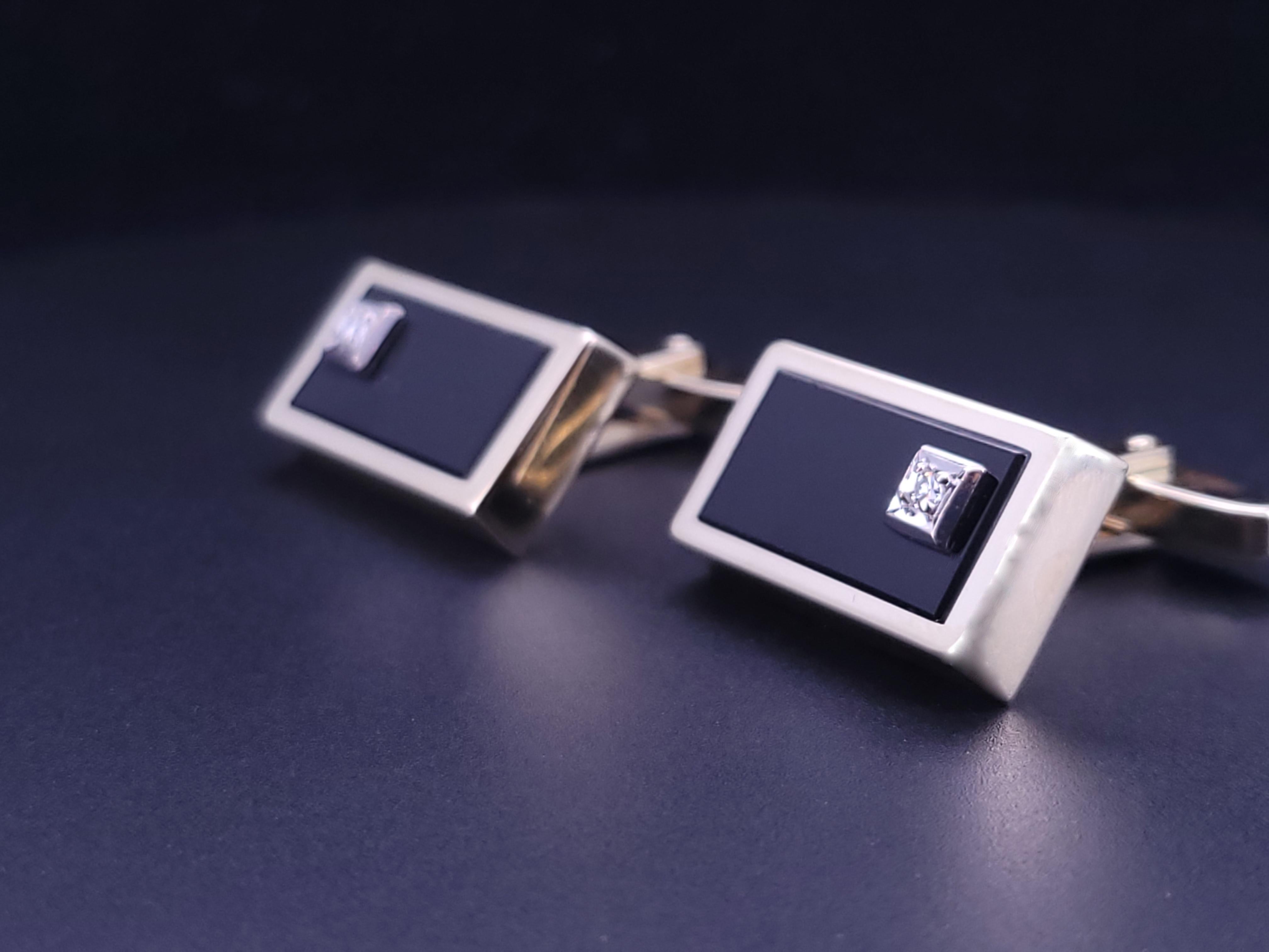 Cufflinks 14K Yellow Gold with Black Onyx and Diamond