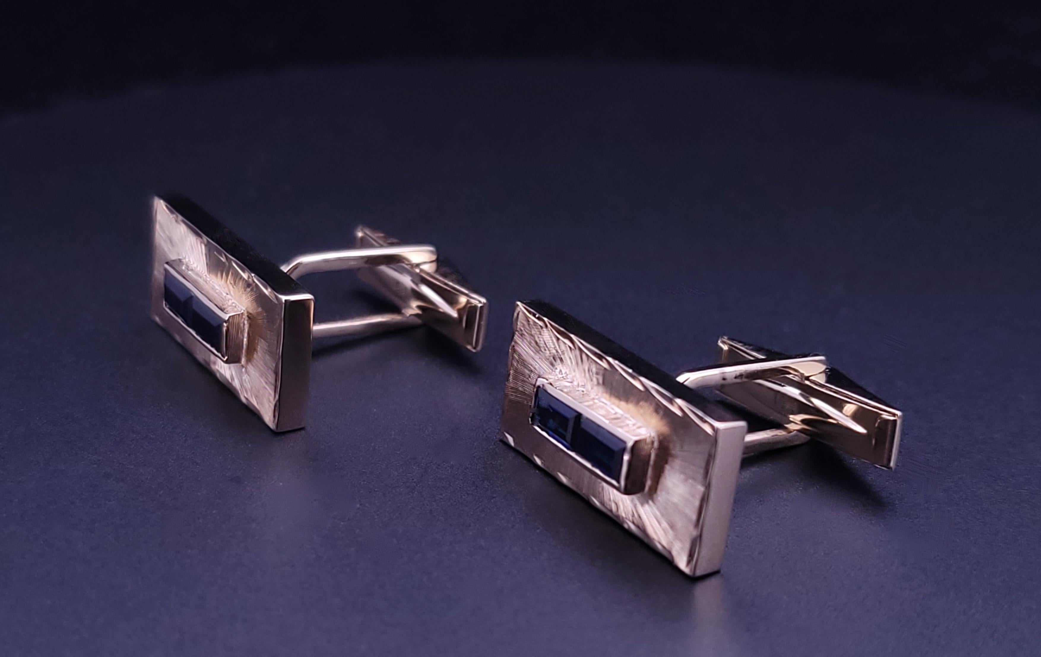 Cufflinks 14K Yellow Gold with Dark Blue Sapphire