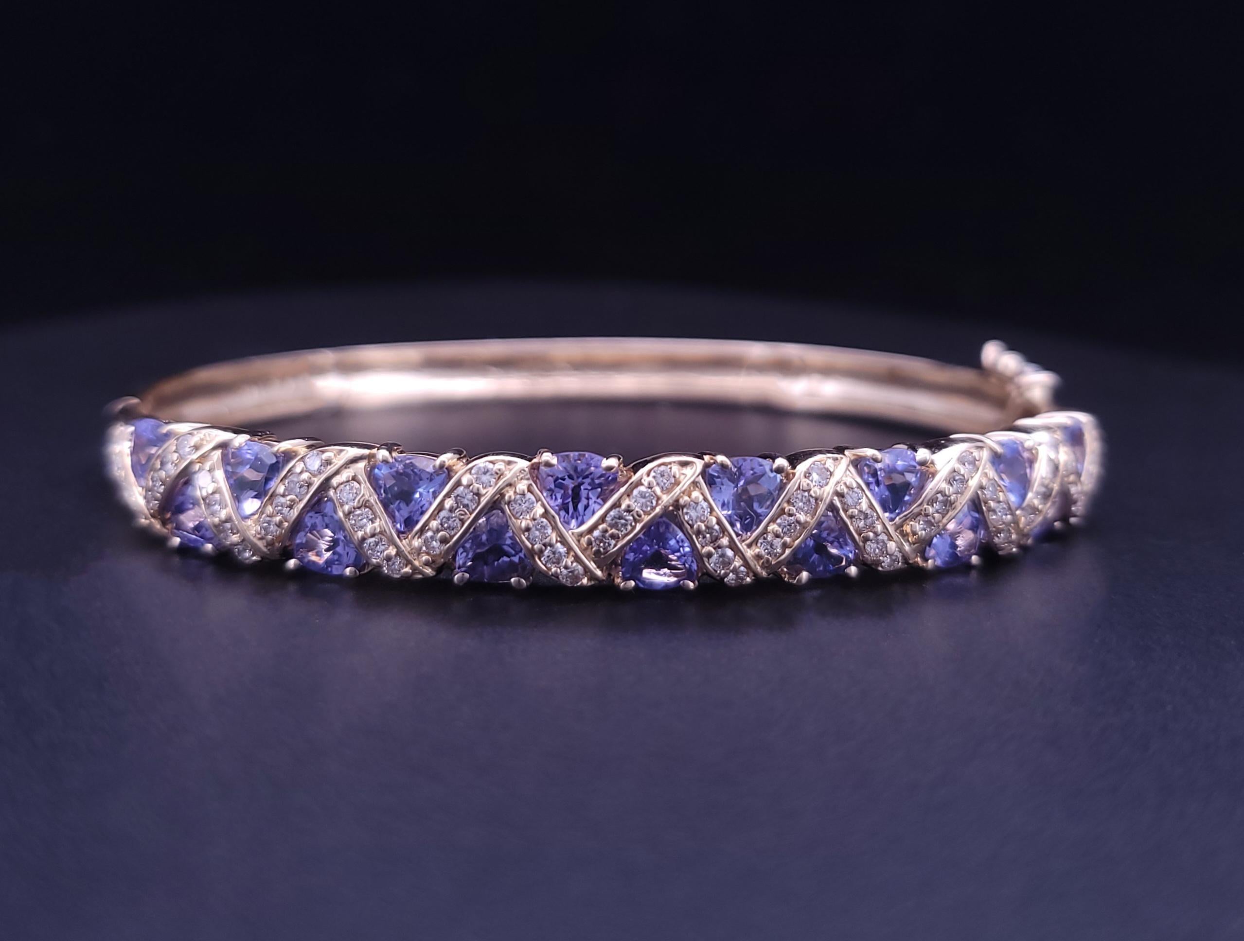 Custom Made 14K Yellow Gold 5ctw Tanzanite and Diamond Higed Bangle