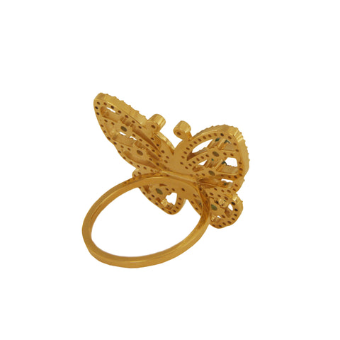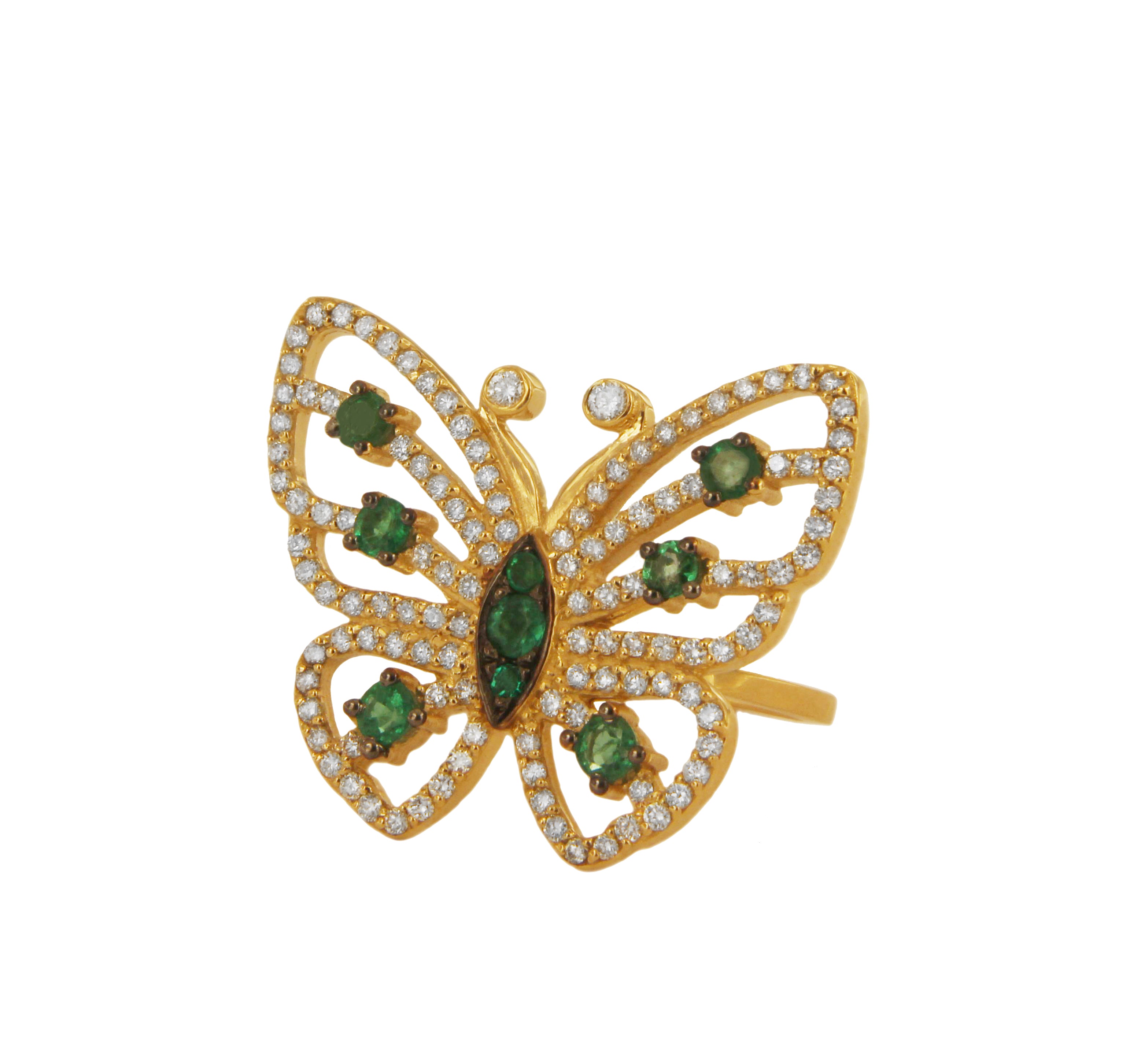 Custom made Butterfly Emerald Ring in Yellow Gold