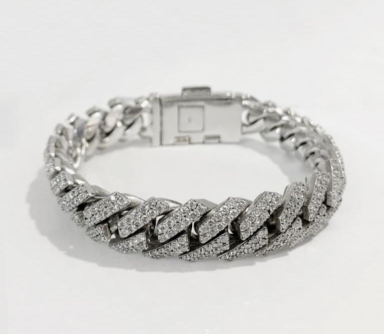 CUSTOM MADE CUBAN LINK BRACELET IN 10K WHITE GOLD, 8" CVD Diamonds