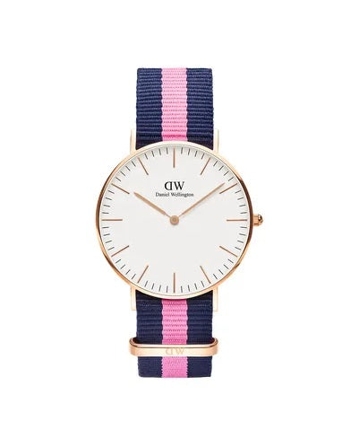 Daniel Wellington Ladies Watch DW00100033 White Dial Rose gold bezel Strap dark blue pink Strap