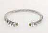 David Yurman 925 Silver 5mm Cable Lemon Citrine & Diamond Cuff Bracelet
