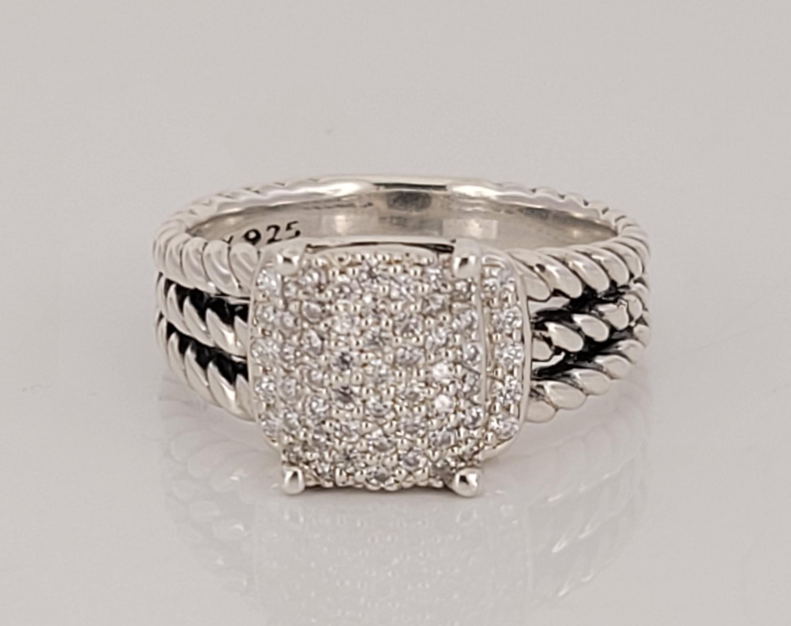 David Yurman Sterling Silver Petite Wheaton Pave Diamond Ring Size 7