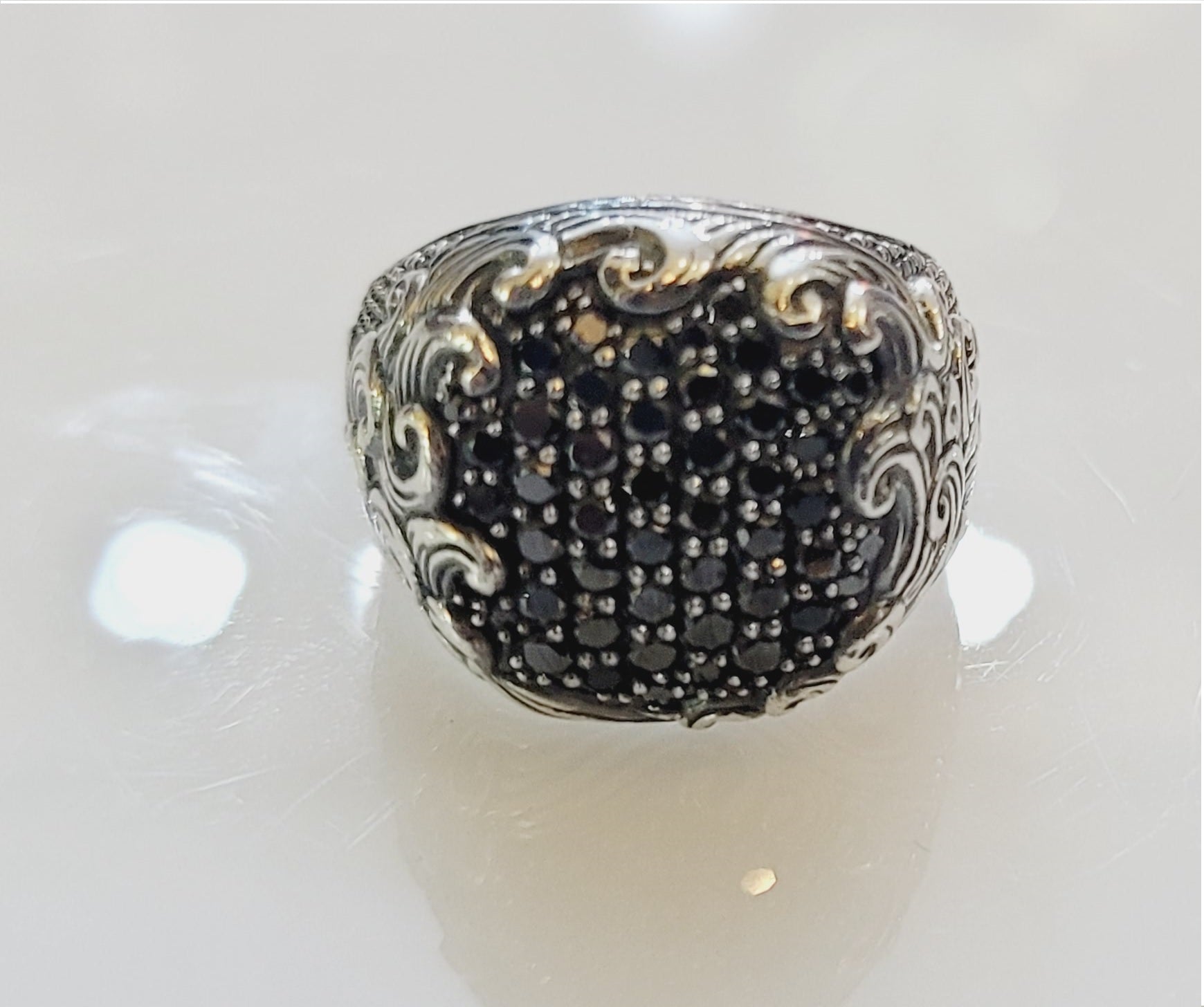Style-RingBrand-David YurmanMetal-Sterling SilverMain stone color-BlackRing with black diamondsGender-MenRing size-10