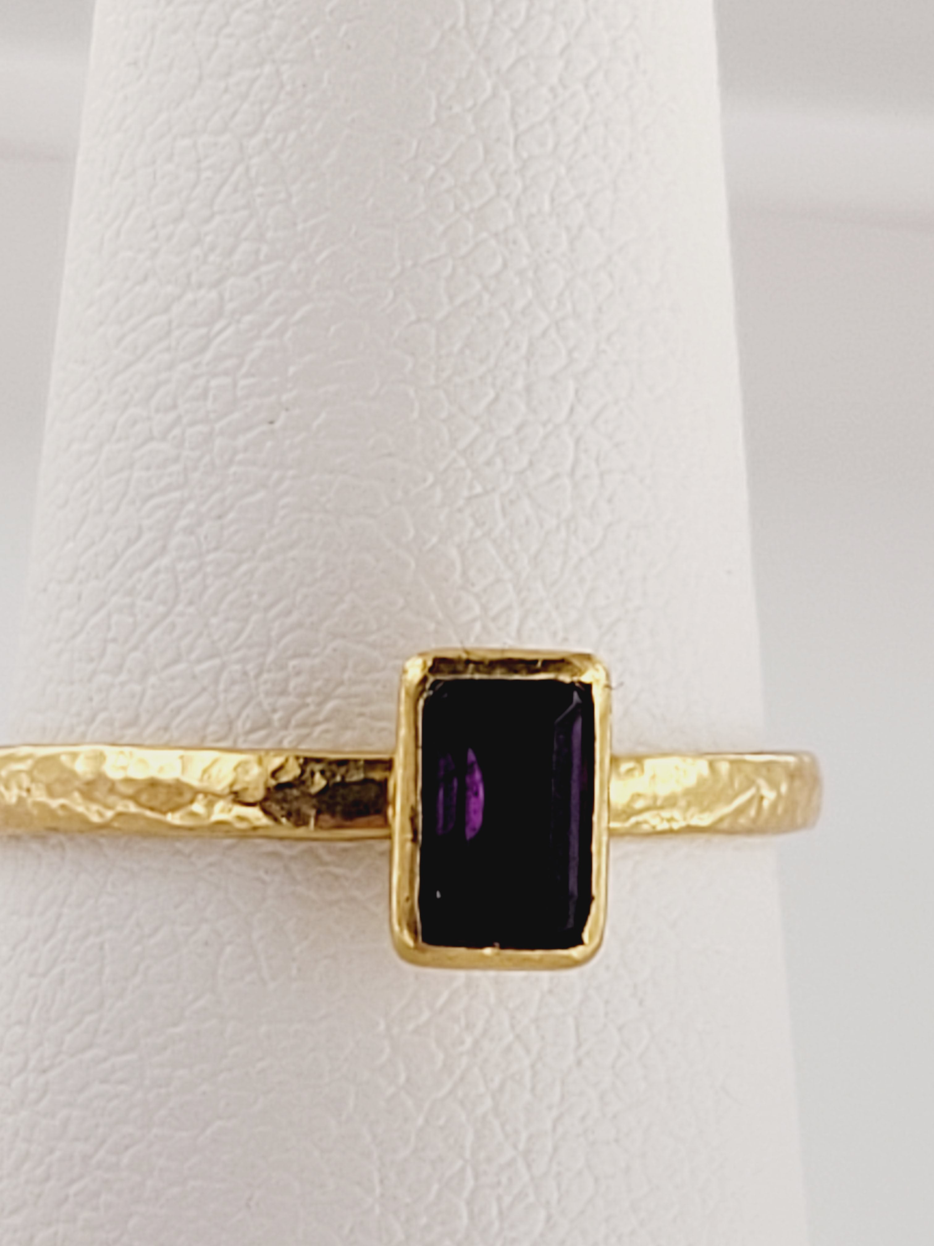 Gurhan Ring R-U22641-AM. Amethyst Center Stone 0.55 carats. Set in 24K Yellow Gold. Size 6.25. Excellent Condition.