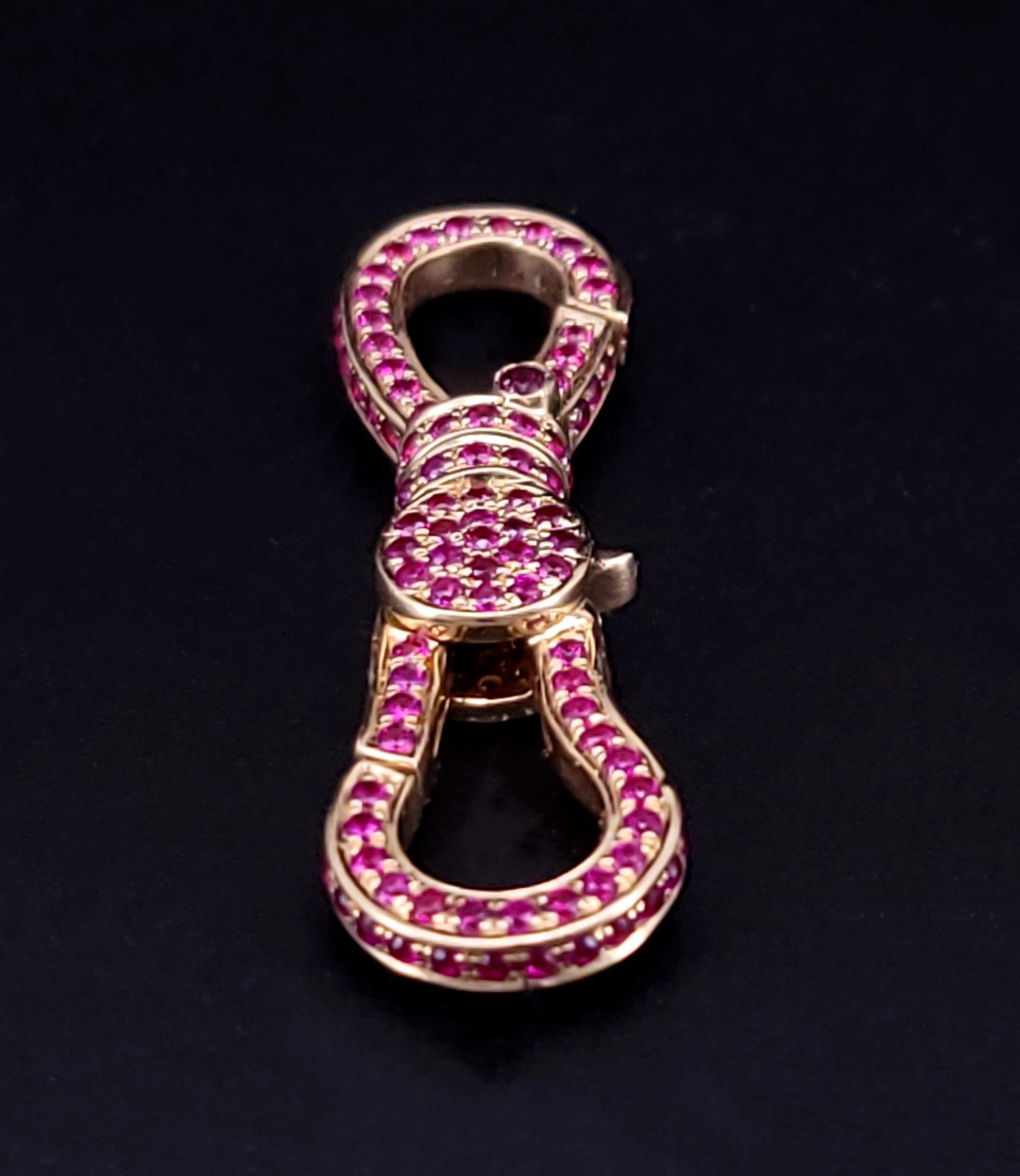 This Double-Sided Ruby Dog Clip Swivel Connector is a versatile piece designed for effortless charm and chain attachment. Crafted for convenience, this connector allows you to easily attach charms and chains through either side, offering flexibility and ease of use for your jewelry designs. One side features a push-in hinge, while the other side boasts a classic lobster-style clasp.