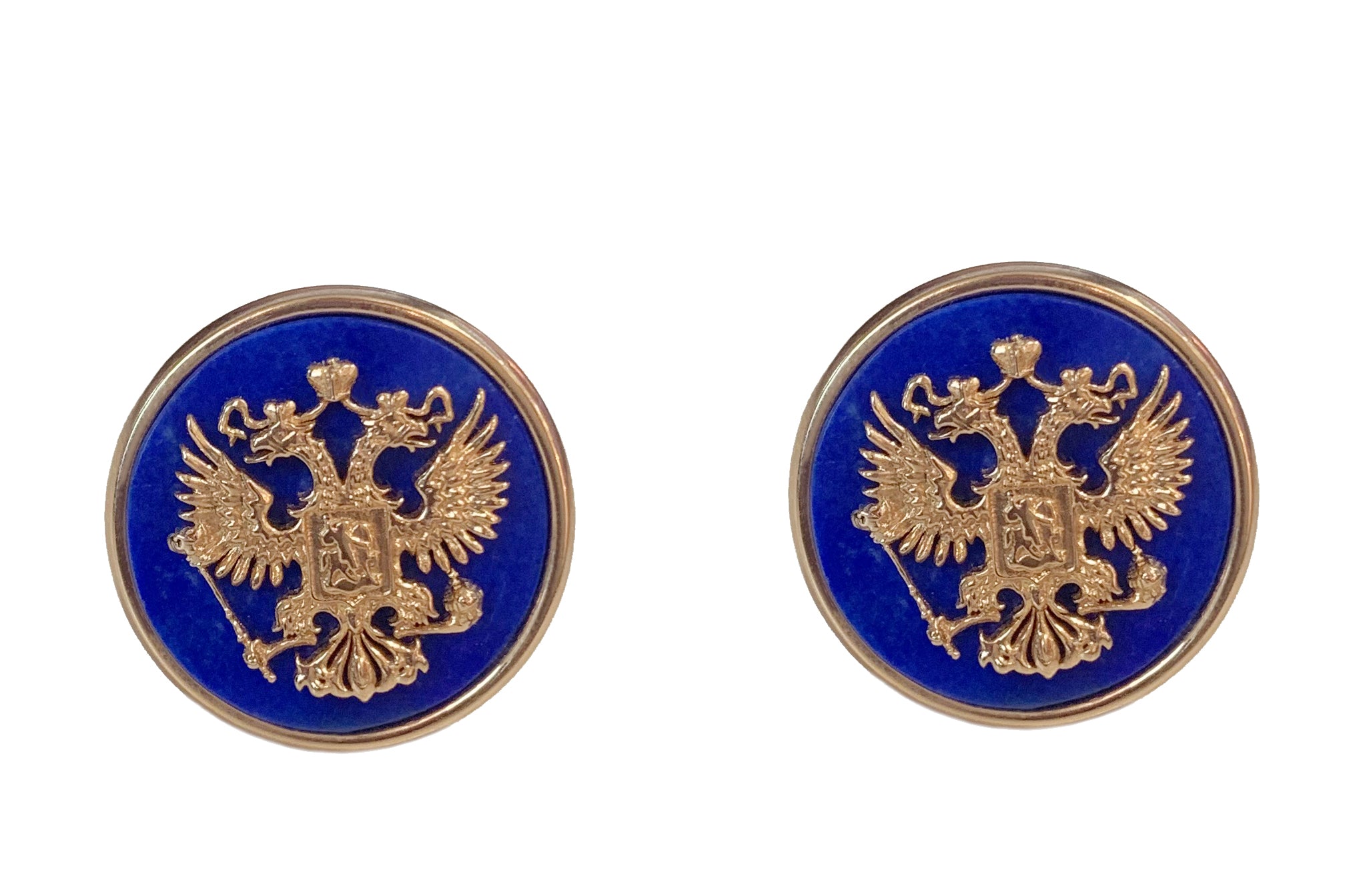 Double Eagle Cufflinks in 14k Red Gold with Lapis Lazuli