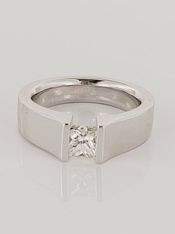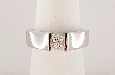 Gelin Abaci Princess Cut Tension Set Diamond Ring. Diamond 0.90 carat, Princess Cut, G color and VS clarity. Set in Platinum 17.1 grams. Size 6.75. Retail Price $6900.