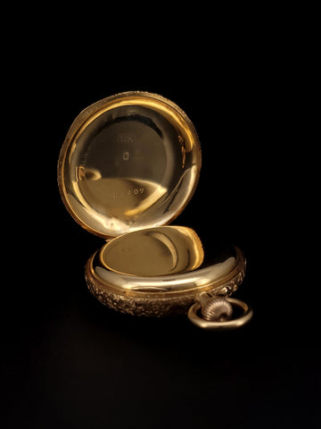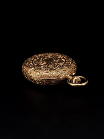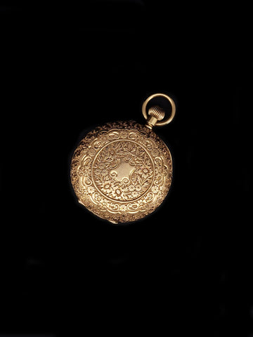Hand Engraved Vintage 1930s 18k Yellow Gold Enamel Pocket Watch