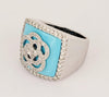 Hand-Made 18K White Gold Turquoise ring with Diamonds