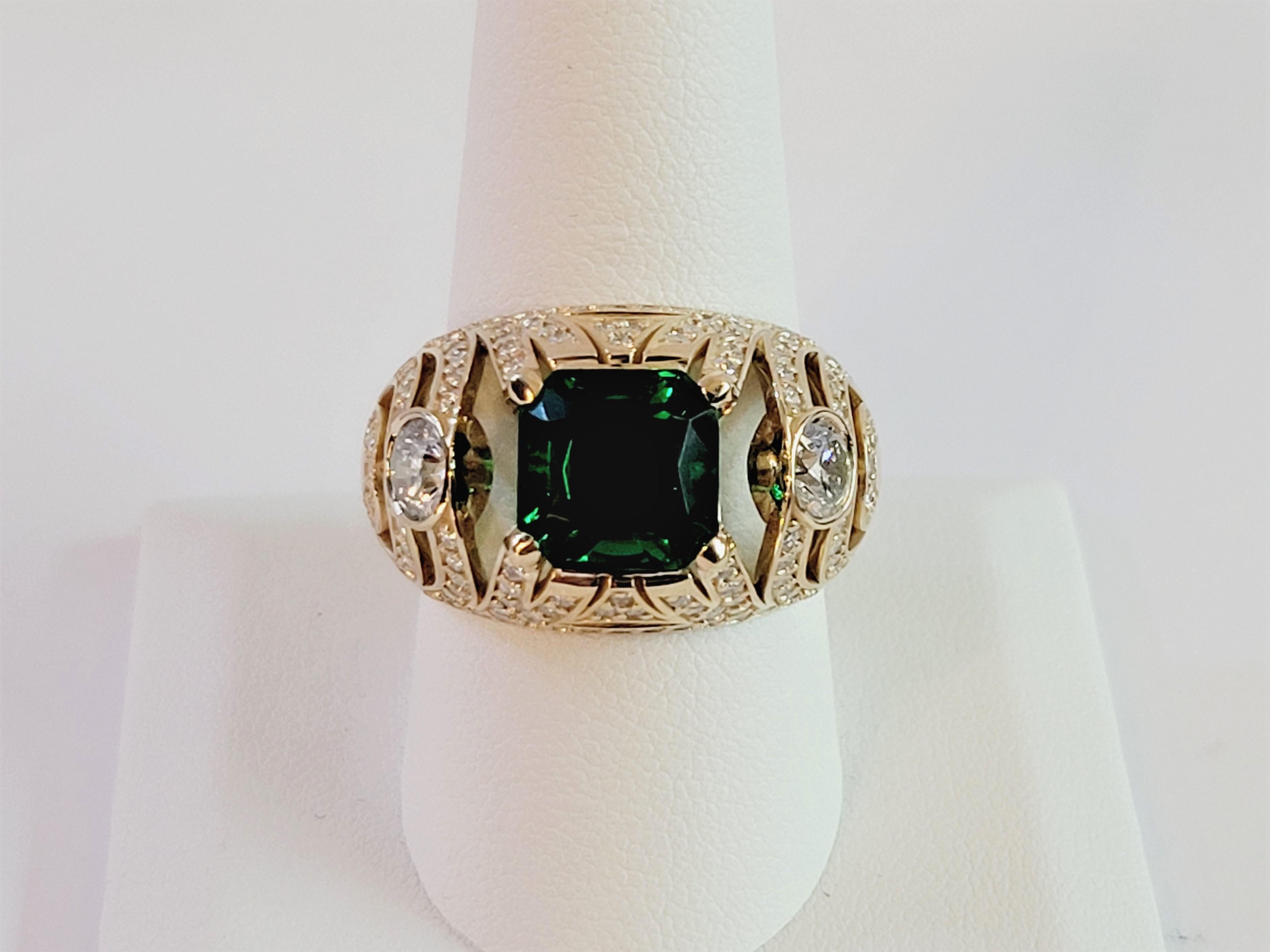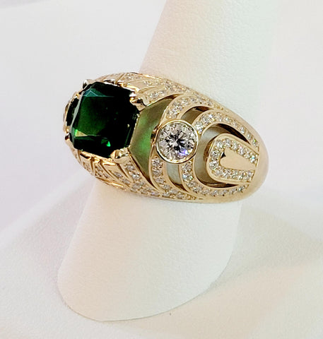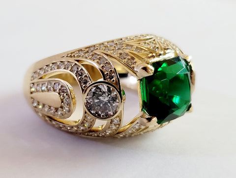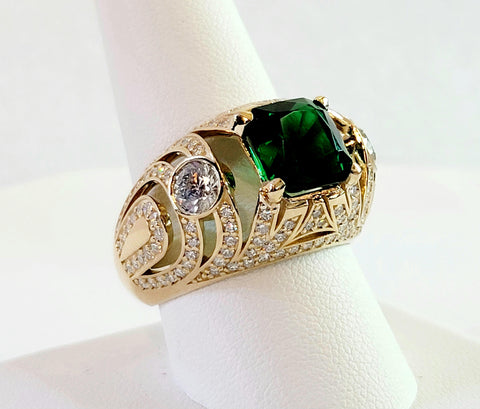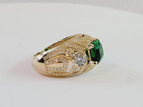 Hand-Made Emerald Rig in 14K Yellow Gold with Diamonds