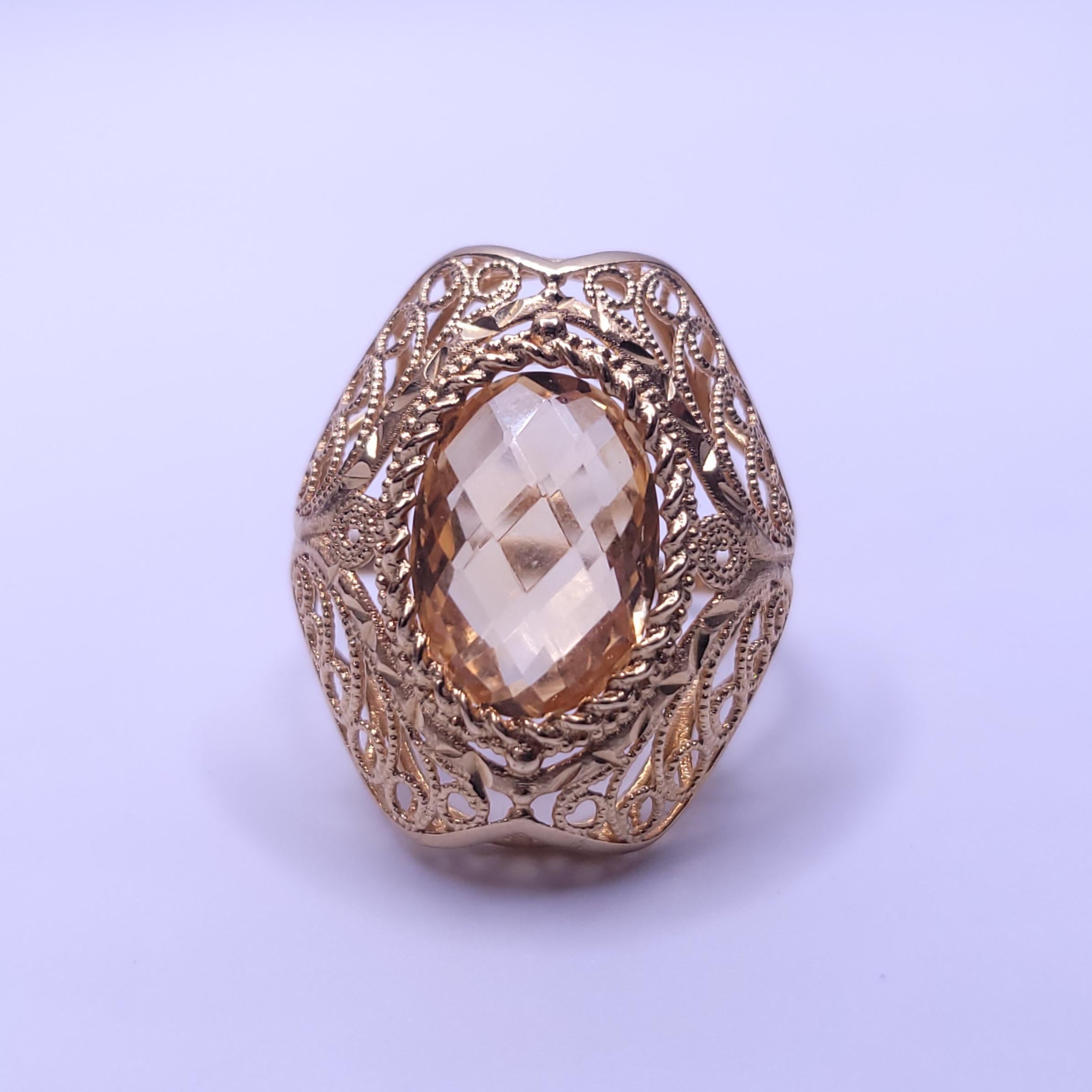 Imperial Citrine Filigree Ring in 14K Yellow Gold Size 9.75