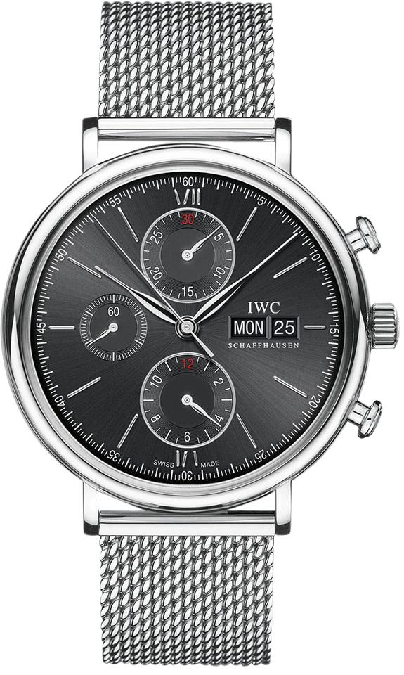 IWC Silver/Black Portfonio Chronograph Dial Steel Watch IW391010