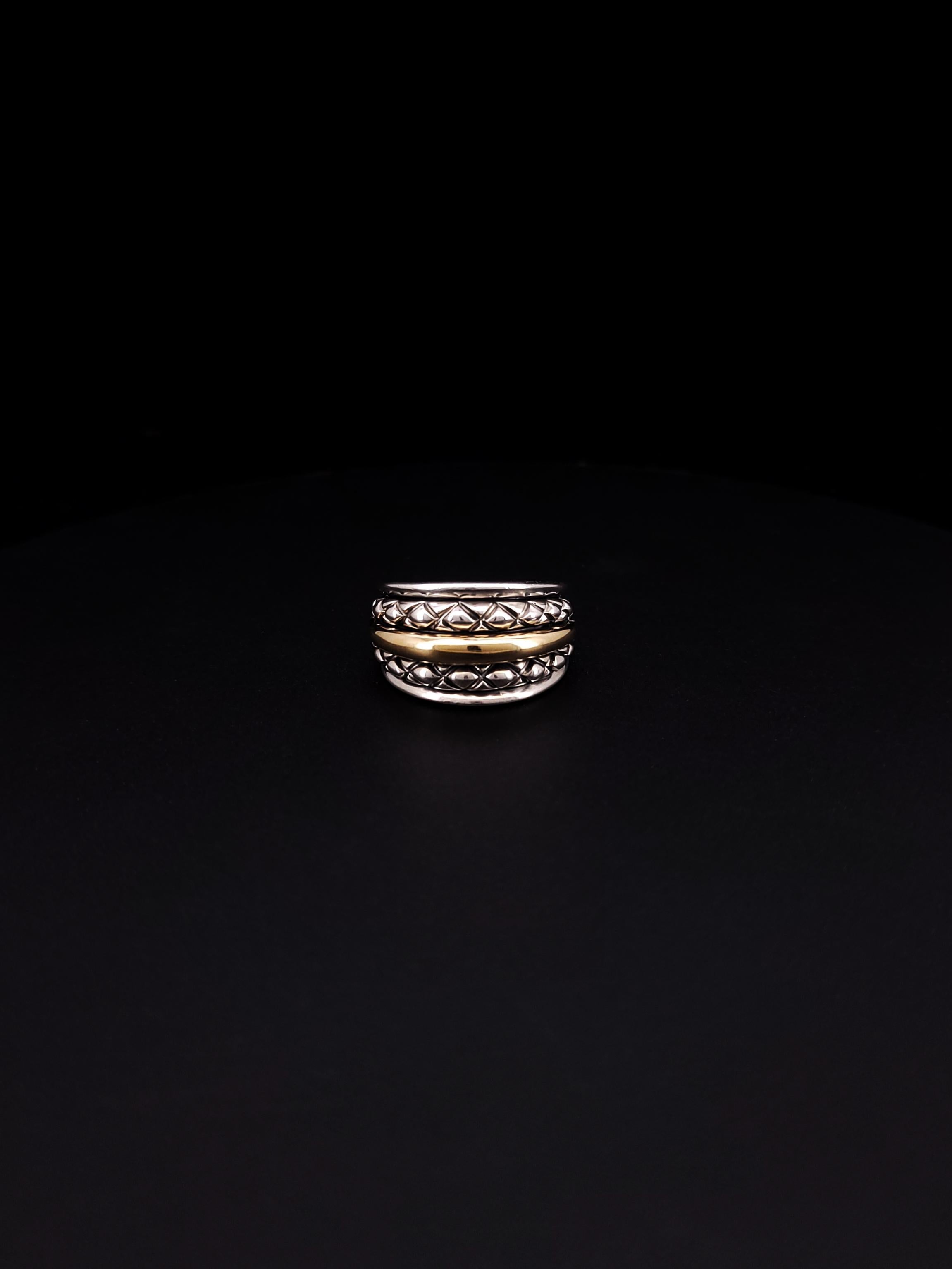 Nancy and David Vintage Two Tone Sterling Silver & 14k Gold Designer Ring