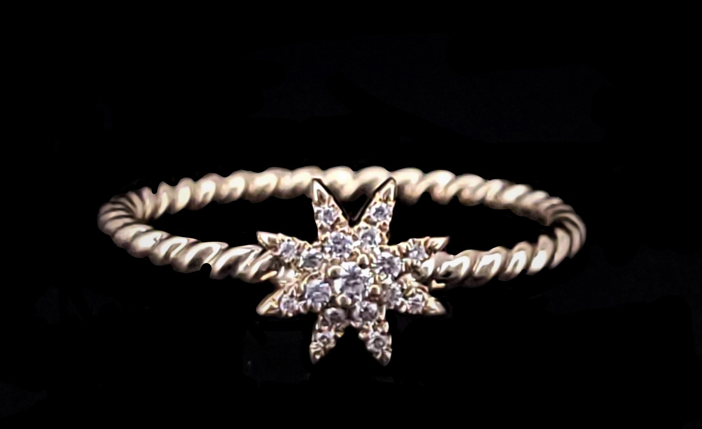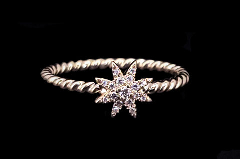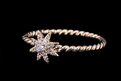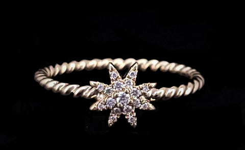 Petite Starburst Station Ring 18K Yellow Gold with Diamonds