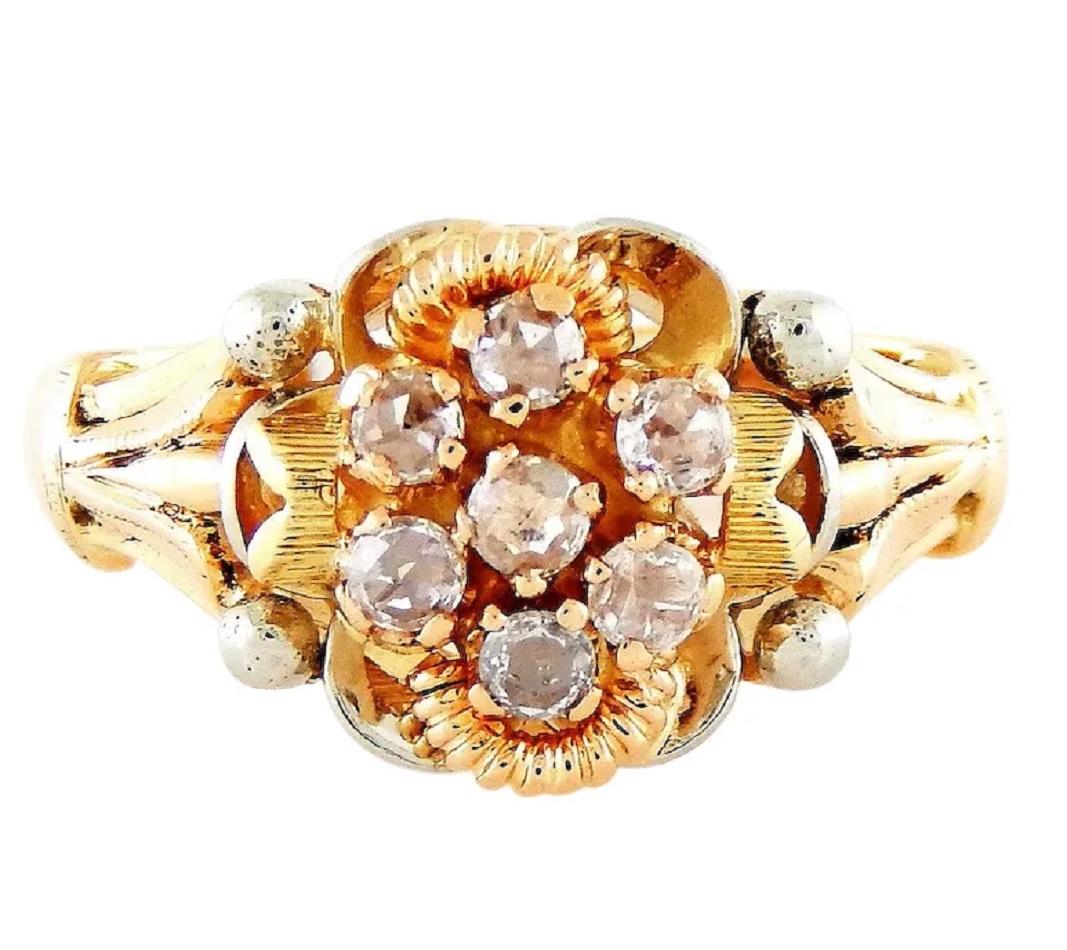Fabulous Vintage rose-cut diamonds, three-tone 14K gold ring!