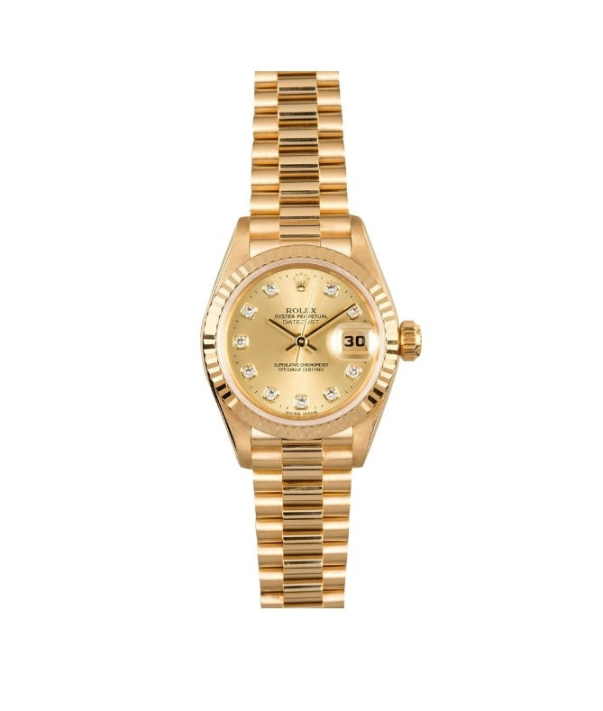 Rolex Oyster Perpetual Datejust 26 Yellow Gold Diamond Dial Watch 69178