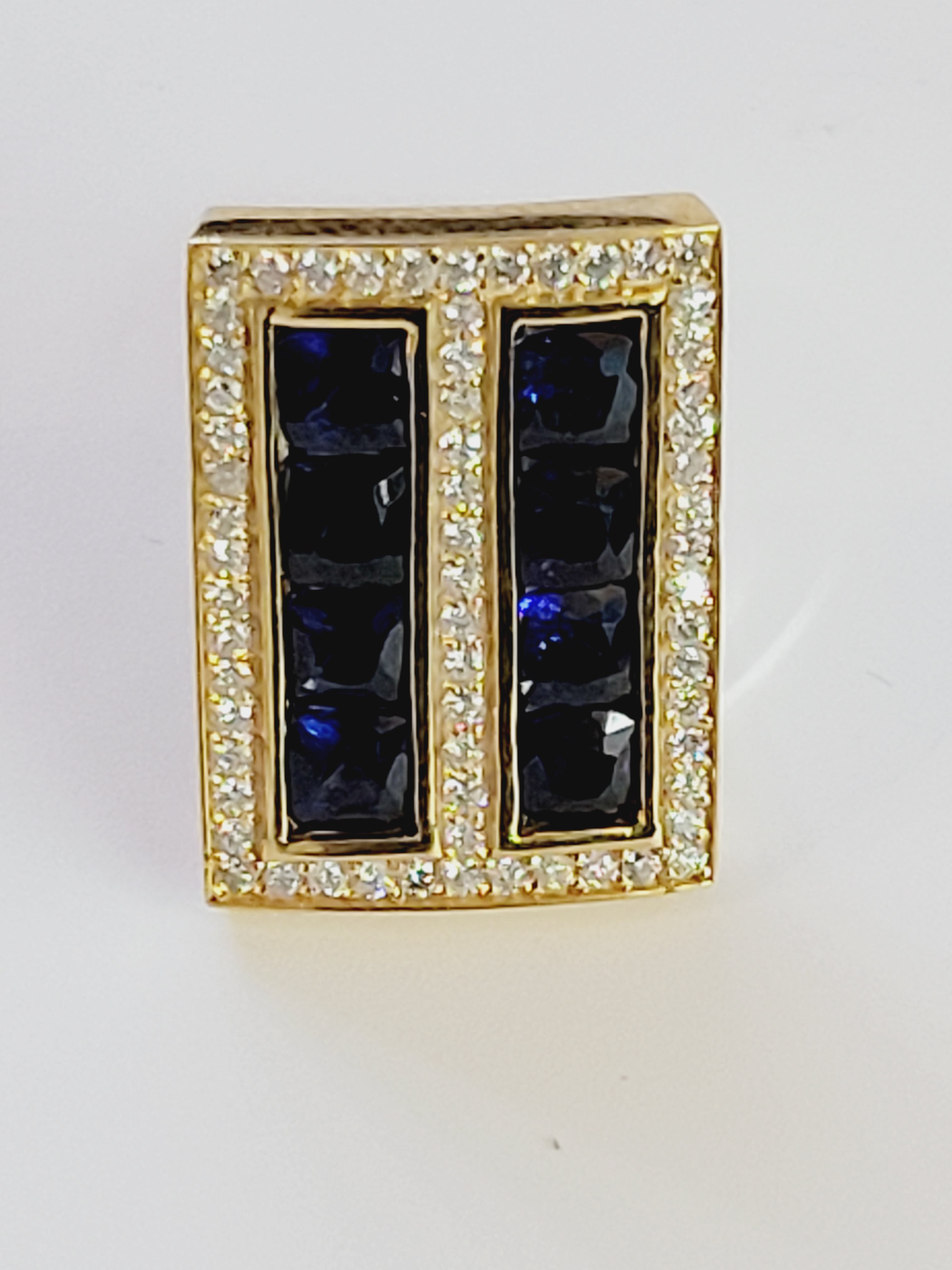 Sapphire Diamond Cufflink Stud Set 14Karat Gold