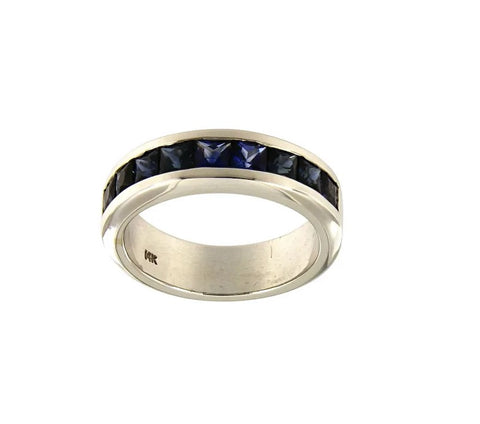 Square Cut Blue Sapphire and Amethyst in 14K White Gold Ring.