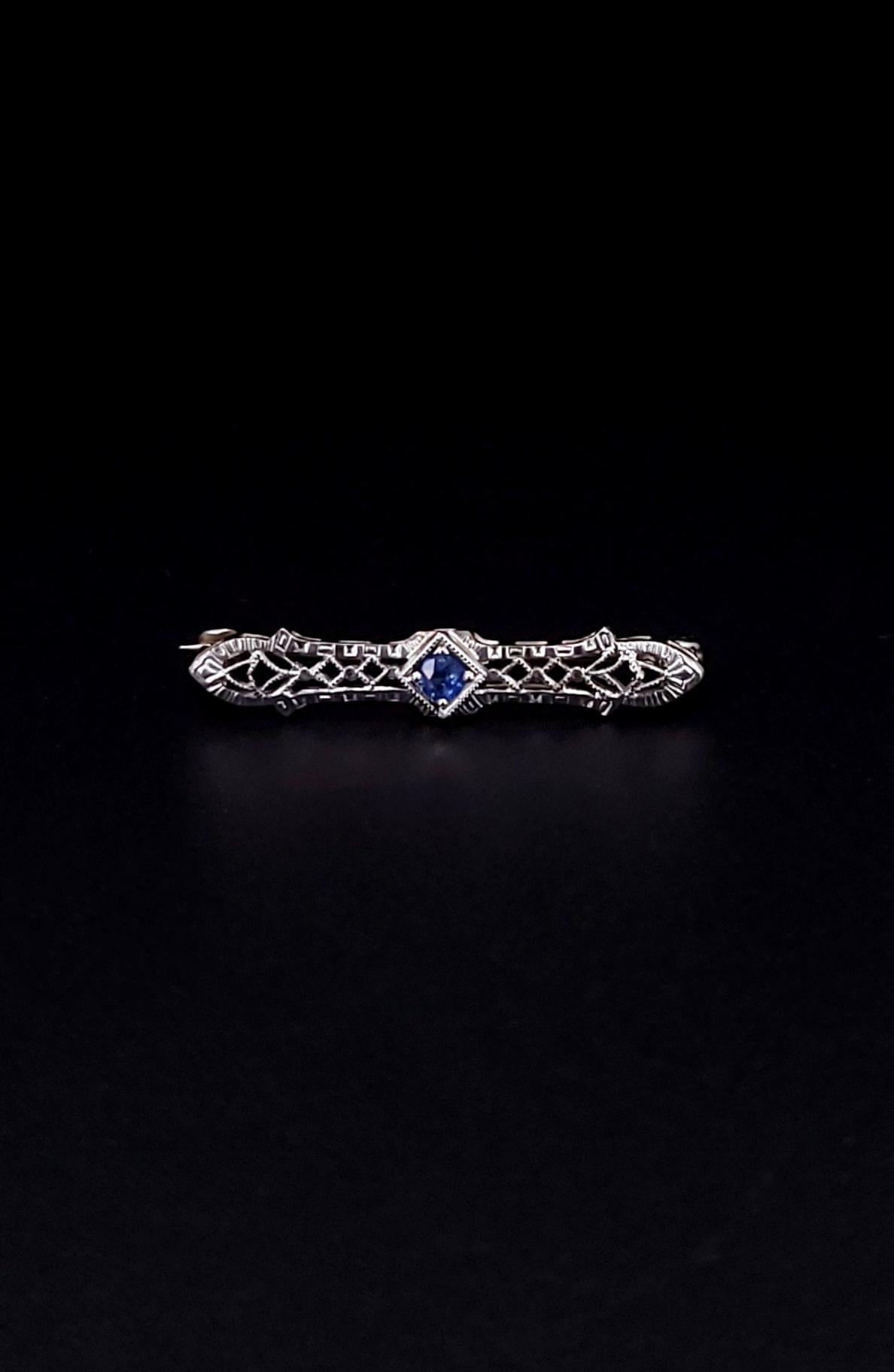 VINTAGE 14K WHITE GOLD WITH SAPPHIRE BROOCH