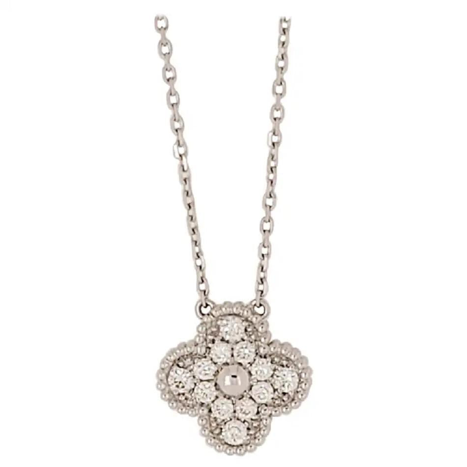 Vintage Alhambra Pendant Necklace 18KW Gold with diamonds