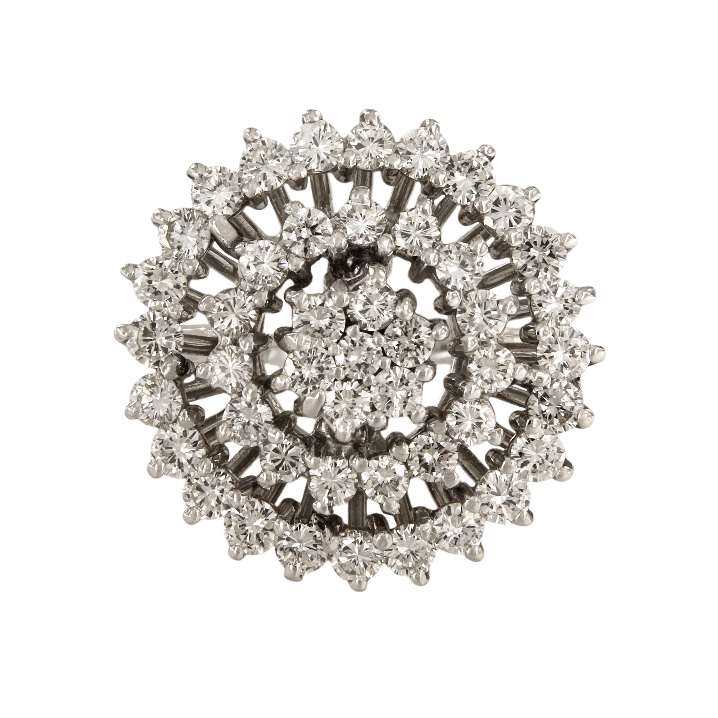 Vintage Flower Shape Diamond Ring in 14K White Gold